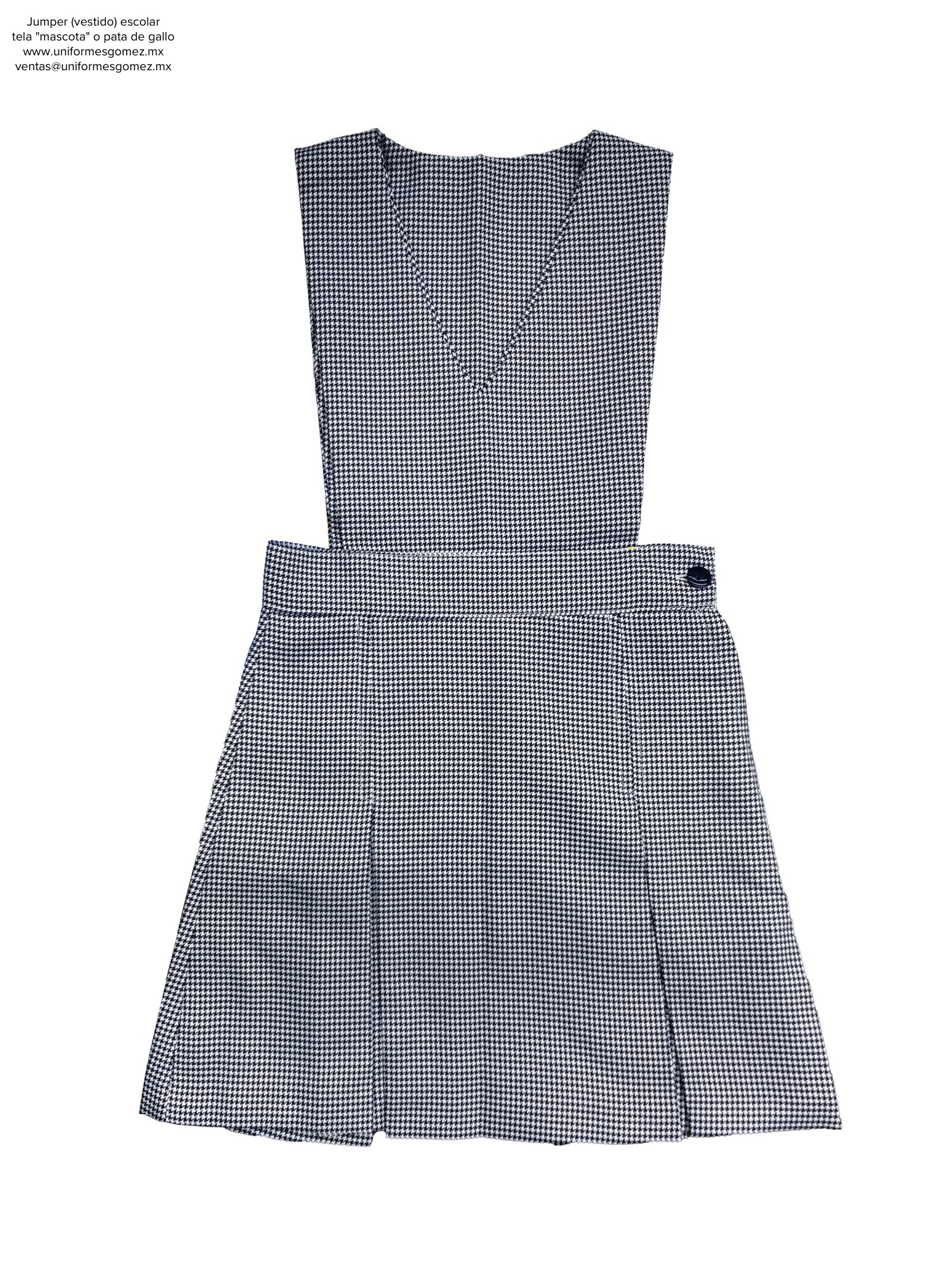 - Jumper tradicional, vestido tipo uniforme escolar, de tela «Pata de Gallo», con cuadros chicos blancos. Diseño cómodo, clásico y resistente.